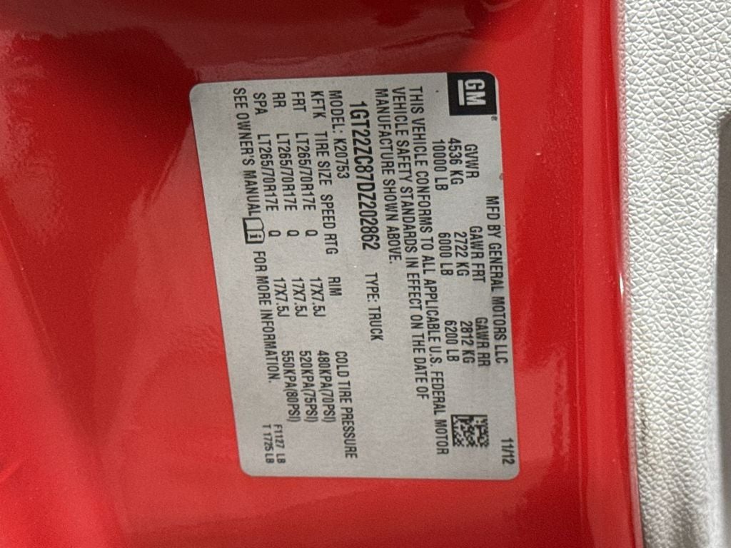 4WD Duramax 6.6L V8 Turbodiesel Allison 1000 6-Speed Automatic Fire Red, Allison 1000 6-Speed Automatic, 4WD, Dark Titanium Cloth, 6 Speakers, ABS brakes, Air Conditioning, AM/FM radio, Fully automatic headlights, Speed control.
