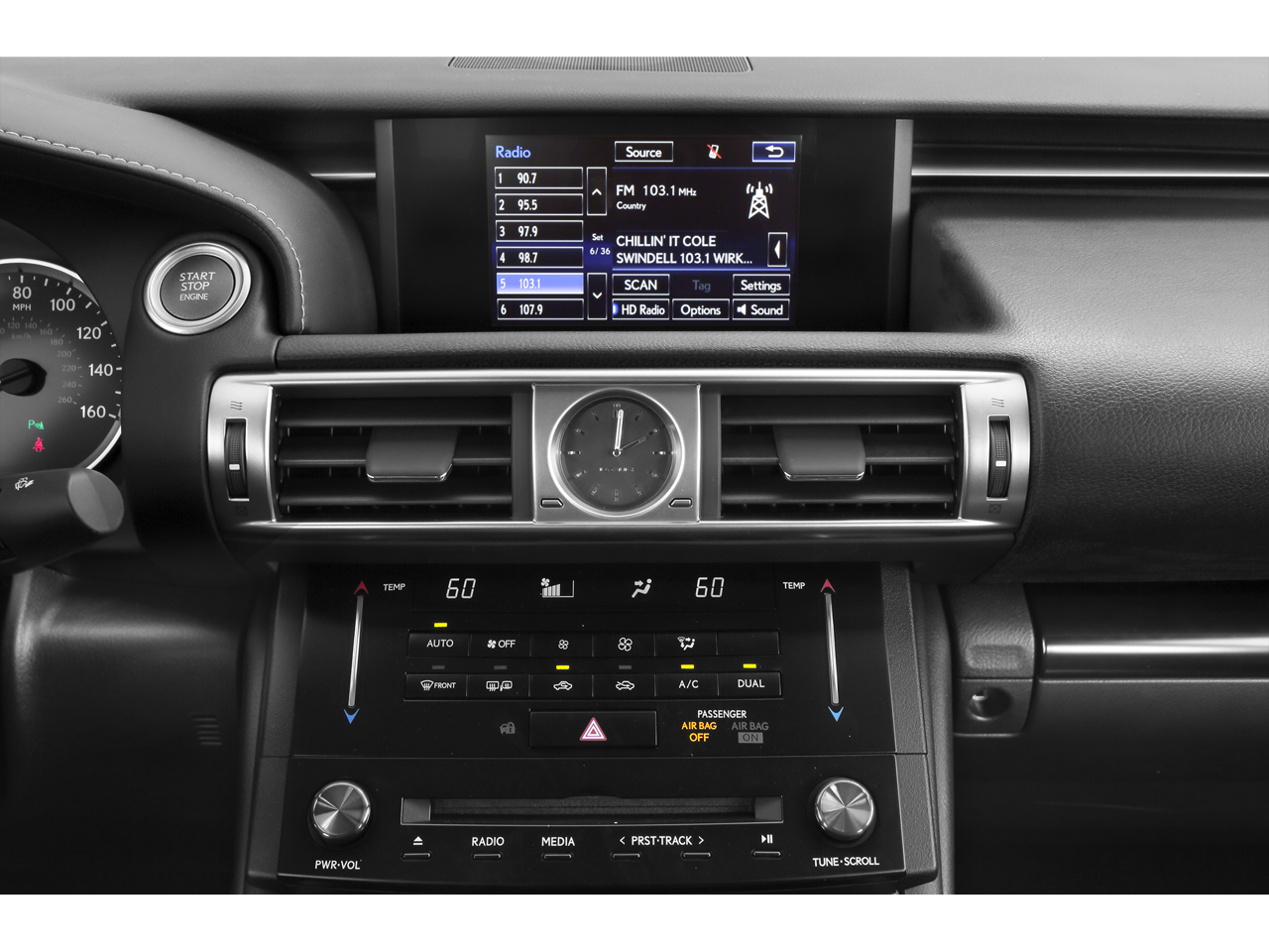 - Radio: Lexus Display Audio -inc: 7-inch VGA screen, 8 speakers, 293-watts AM/FM radio, single in-dash CD changer, digital signal processing w/Automatic Sound Levelizer (ASL), HD Radio (complimentary traffic and weather), integrated SiriusXM satellite radio receiver (complimentary 90-day trial subscription included), iTunes tagging, MP3/WMA and dual USB/iPod audio input plugs, rear glass-imprinted radio antenna w/separate FM diversity antenna, streaming audio via Bluetooth 3.0 and voice recognition