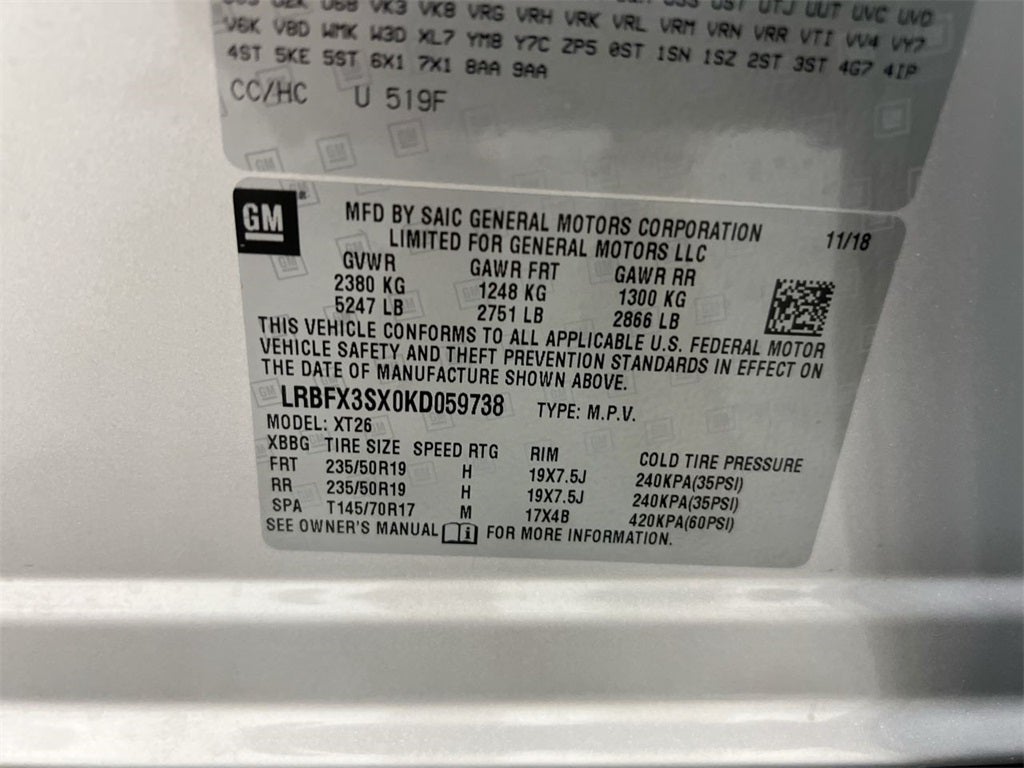 - Tires, P235/50R19 all-season blackwall