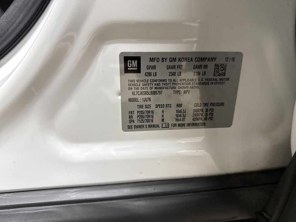 FWD ECOTEC 1.4L I4 SMPI DOHC Turbocharged VVT 6-Speed Automatic 4D Sport Utility Summit White, 6 Speakers, Air Conditioning, AM/FM radio, Electronic Automatic Cruise Control, Exterior Parking Camera Rear, Power windows, Steering wheel mounted audio controls.