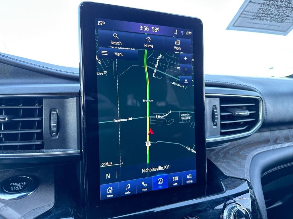 The exterior of this Explorer shines with a sleek Black paint color and striking 21-inch bright machined-face aluminum wheels. Step inside and you'll be greeted by premium leather-trimmed, heated and ventilated front seats, a heated steering wheel, and a stunning 10.1-inch touchscreen display with built-in navigation. The technology package adds an impressive 980-watt, 12-speaker B&O sound system to elevate your driving soundtrack.