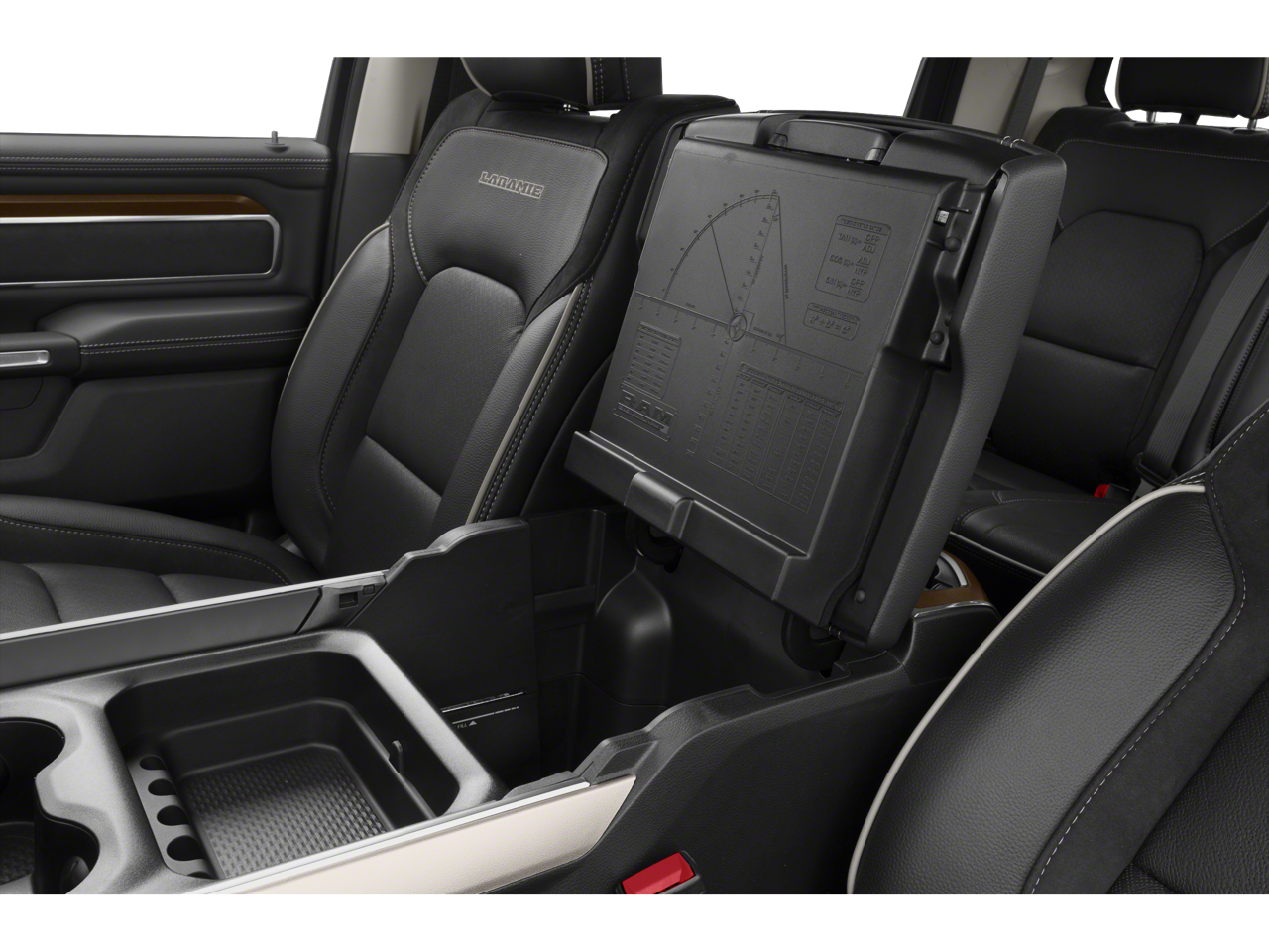 10 Speakers, 2nd Row In Floor Storage Bins, 3 Rear Seat Head Restraints, 3.21 Rear Axle Ratio, 4 Way Front Headrests, 4-Wheel Disc Brakes, ABS brakes, Alloy wheels, Audio memory, Auto High Beam Headlamp Control, Auto-dimming door mirrors, Auto-Dimming Exterior Driver Mirror, Automatic temperature control, Driver Seat Memory, Dual front impact airbags, Exterior Mirrors w/Memory, Foam Bottle Insert (Door Trim Panel), Front Fog Lamps, Front Lighting Value Package, Halogen Quad Headlamps, Heated front seats, Heated steering wheel, Illuminated entry, Integrated Center Stack Radio, Laramie Level A Equipment Group (DISC), Leather steering wheel, ParkSense Front/Rear Park Assist w/Stop, ParkView Rear Back-Up Camera, Quick Order Package 25H Laramie, Rain Sensitive Windshield Wipers, Rear 60/40 Folding Split Recline Seat, Rear step bumper, Rear Wheelhouse Liners, Remote Tailgate Release, Security system, Traction control.