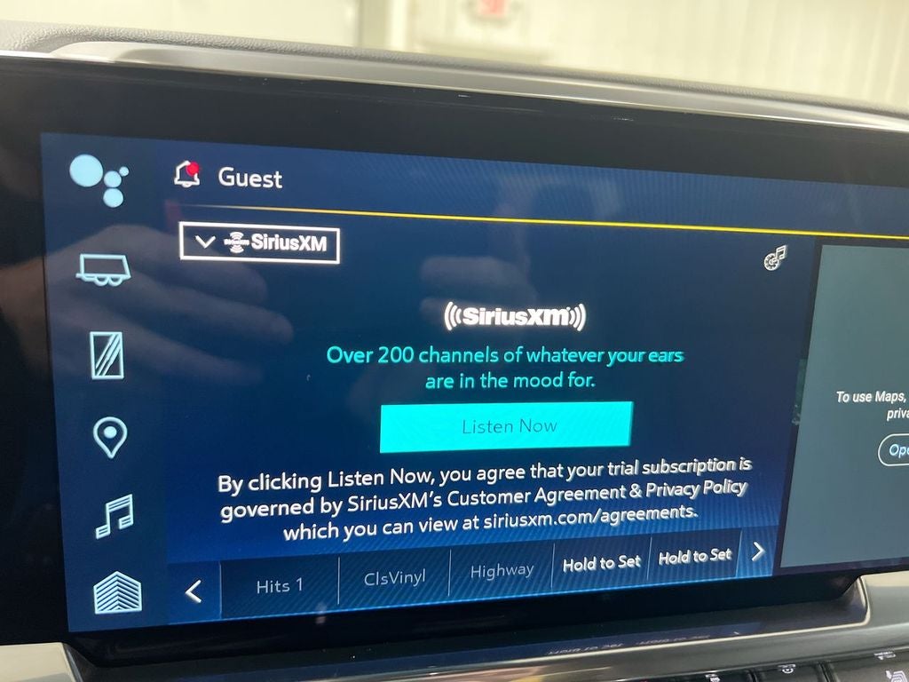 - SiriusXM with 360L Equipped with SiriusXM with 360L. Enjoy a trial subscription of the Platinum Plan for the full 360L experience, with a greater variety of SiriusXM content, a more personalized experience and easier navigation. With the Platinum Plan, you can also enjoy your favorites everywhere you go, with the SiriusXM app, online and at home on compatible connected devices. (IMPORTANT: The SiriusXM radio trial package is not provided on vehicles that are ordered for Fleet Daily Rental ("FDR") use. If you decide to continue service after your trial, the subscription plan you choose will automatically renew thereafter and you will be charged according to your chosen payment method at then-current rates. Fees and taxes apply. See the SiriusXM Customer Agreement at www.siriusxm.com for complete terms and how to cancel. All fees, content, features, and availability are subject to change. GM connected vehicle services vary by vehicle model and require active service plan, working electrical system, cell reception and GPS signal. See onstar.com for details and limitations.)