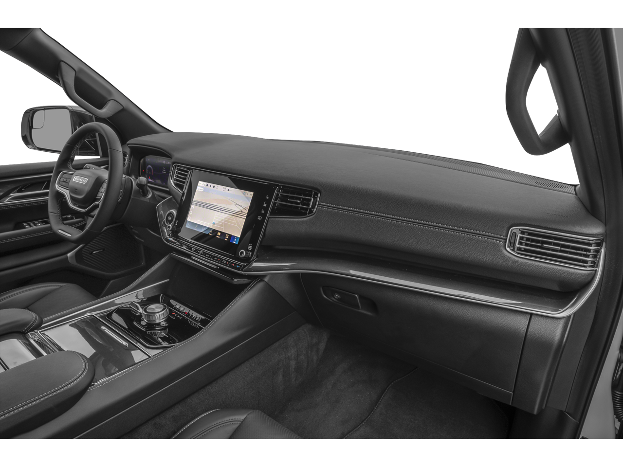 19 Speaker McIntosh Audio System, 2nd Row Manual Window Shades, 3 Panel Sunroof, 3rd row seats: bench, 4-Wheel Disc Brakes, ABS brakes, Adjustable pedals, Adjustable Roof Rail Crossbars, Amazon Fire TV Built-In, Anti-whiplash front head restraints, Auto-leveling suspension, Cargo Cover, Convenience Group I, Drowsy Driver Detection, Emergency communication system: Wagoneer Connect, Four wheel independent suspension, Genuine wood console insert, Genuine wood dashboard insert, Genuine wood door panel insert, Heated door mirrors, Heated steering wheel, Intersection Collision Assist System, Luxury Front & Rear Floor Mats, Memory seat, Navigation System, Normal Duty Suspension, P&P Park & Unpark Assist w/Stop System, Panic alarm, Pedal memory, Power Deployable Running Boards, Premium Group I, Quick Order Package 25N, Radio: Uconnect 5 Nav w/10.1 Display, Rear dual zone A/C, Rear Seat Video Group 1, Reversible Carpet/Vinyl Cargo Mat, Seatback Video Screens, Security system, Side Distance Warning, Steering wheel mounted audio controls, Surround View Camera System, Traction control, Traffic Sign Recognition, Turn signal indicator mirrors, Video USB Port, Wheels: 22 x 9.0 Premium 3 Aluminum.
